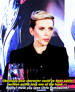 《复联1》宣传时,记者采访斯嘉丽,问她是如何保持身材驾驭黑寡妇战服的?