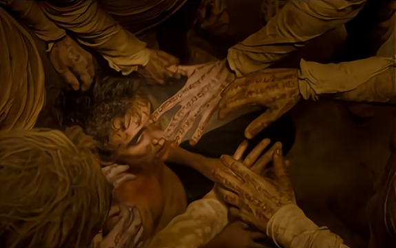 那个通灵者为了获得更强大的能力,偷偷去墓地挖尸体。他把尸体全身都刻满了咒语,并挖掉了他们的眼皮。